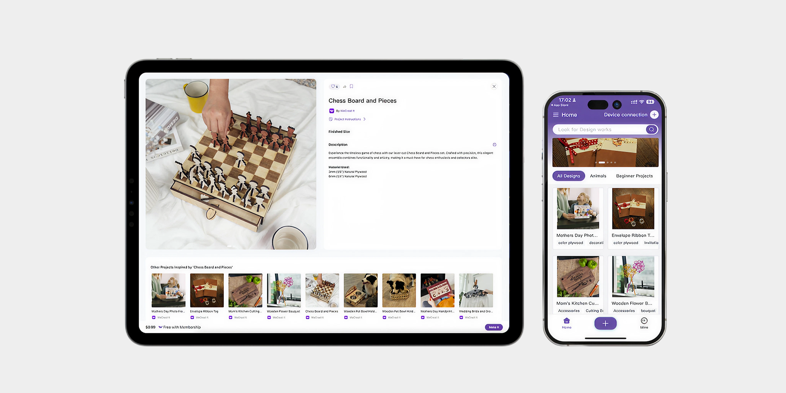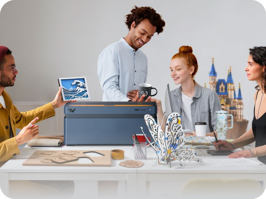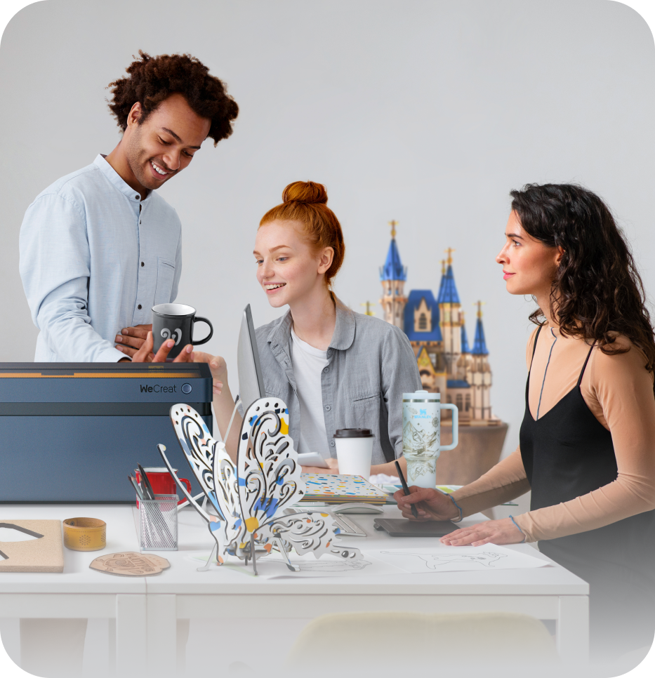 Purchase any machine on wecreat.com and get 6-month premium MakeIt membership and unlimited designs for free. Simple setup, smart software, and blazing speed—start creating your best-seller the moment WeCreat lands.