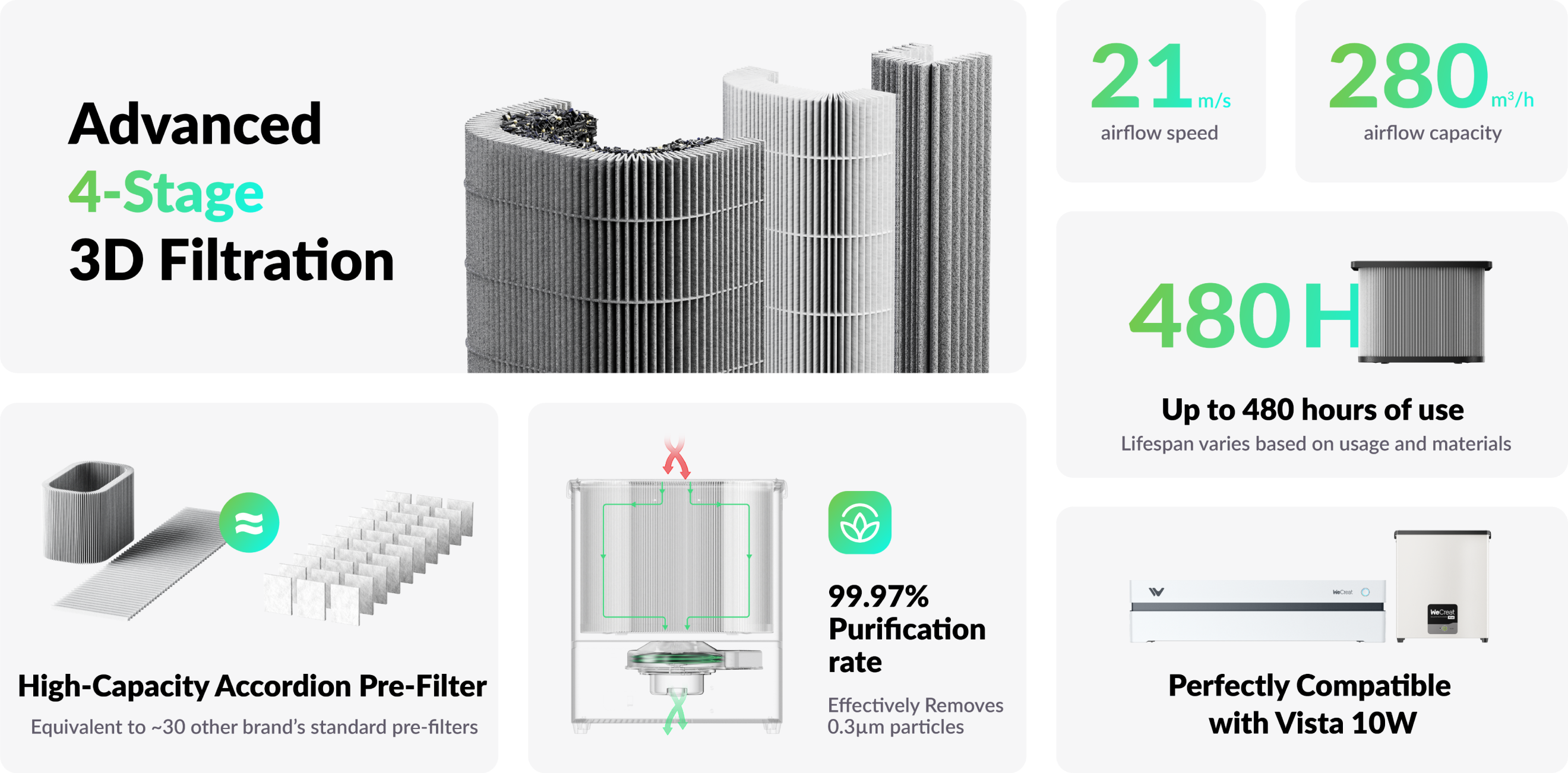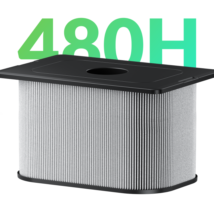 Enjoy up to 480 hours of use before needing to change the filter.