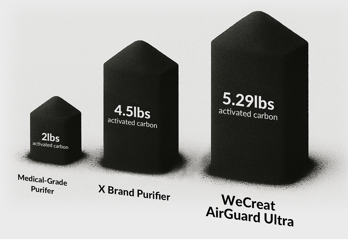 - Superior Activated Carbon Capacity: Equipped with 5.29 lbs (2.4 kg) of high-density activated carbon, surpassing industry standards to effectively absorb harmful chemicals, odors, and gases.