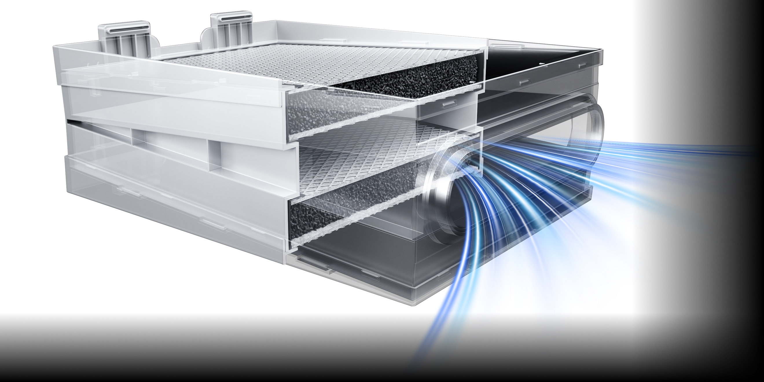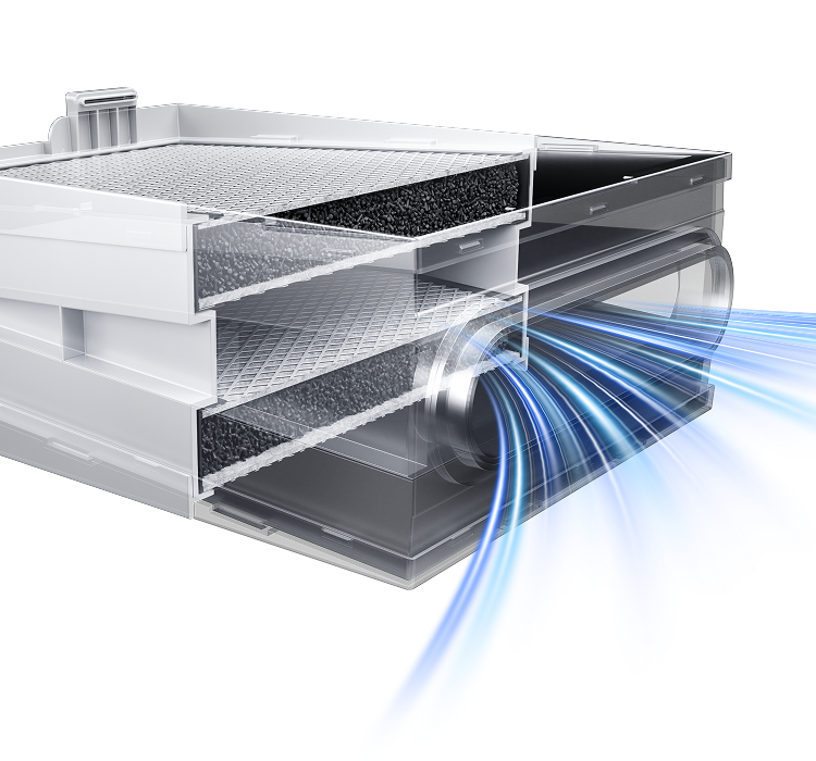 Packed with a total of 2.4 kg (5.29 lbs) of high-efficiency hig-quality activated carbon, our next-level purification system surpasses even medical-grade air purifiers and outperforms competitors in carbon volume. More carbon means cleaner air, longer filter life, and a healthier workspace.