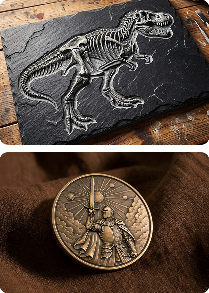 No 3D experience required, in just one click. Instantly convert any 2D image into a fully workable 3D relief effect ready for embossing through our software.