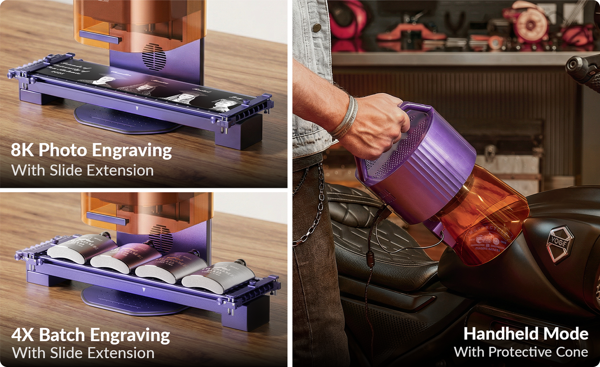 The world's 1st rotary + slide extension combo makes engraving any cylindrical project seamless and confident.