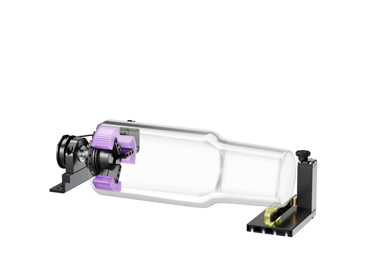 True Full-Wrap engraving is achieved with the innovative expansion claw design, which grabs ahold of the tumbler tightly and securely from within.