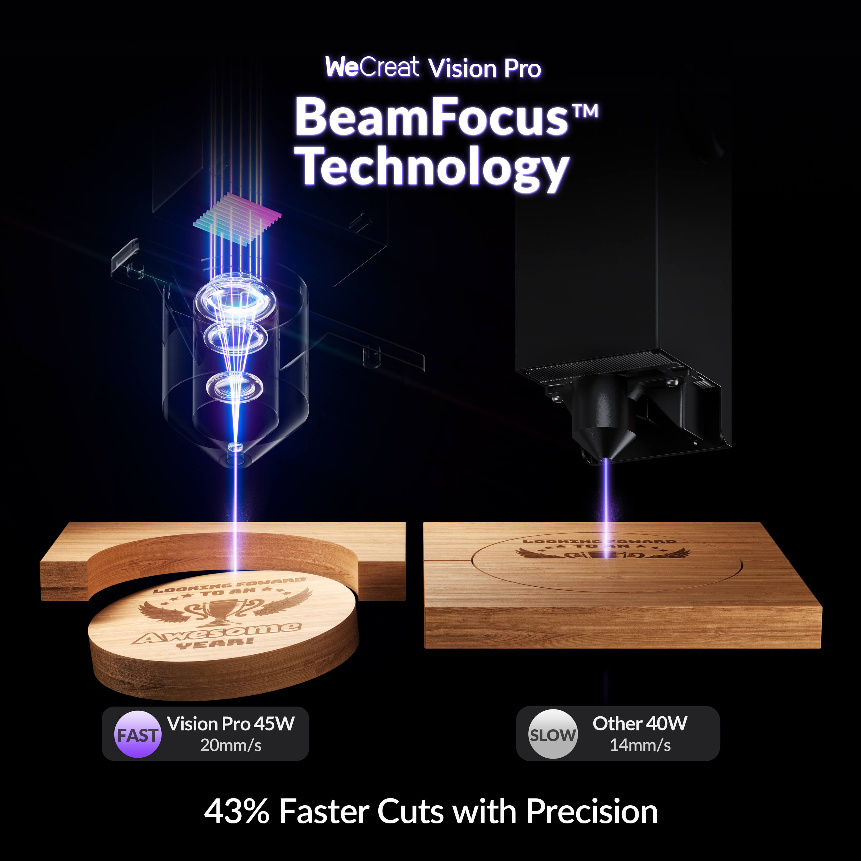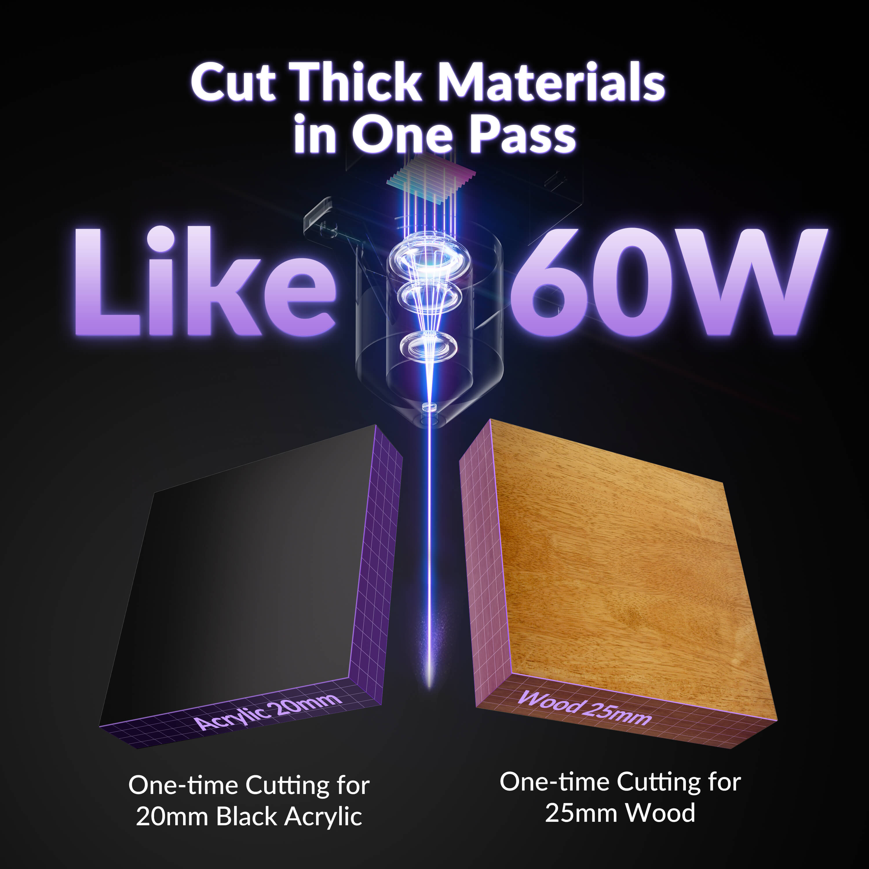 BeamFocus: A unique optical system that delivers 60W-like cutting power with just one click.